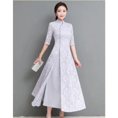 Improved Cheongsam Spring and Autumn New Retro Chinese Style Skirt Feminine Elegant Lace Dress