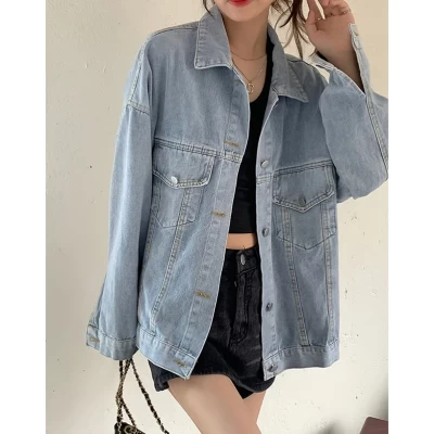 Denim Jacket Long Sleeve Button Down Shirts Boyfriend Oversized Blouses
