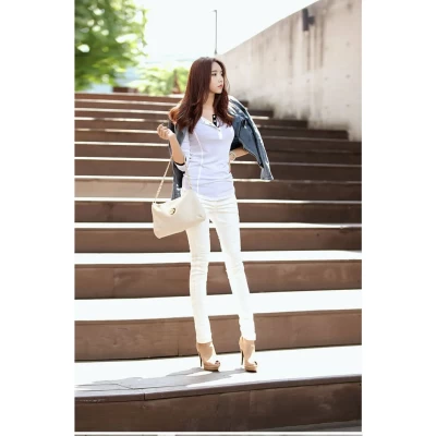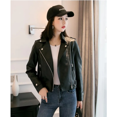 Women's Coat Slim Fit Student Beige Short Leather Jacket