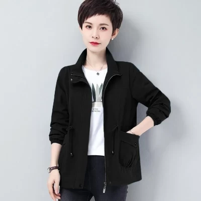 New Spring Autumn Trench Coat Women Fashion Lining Windbreaker Drawstring Waist Stand Collar Base Coat Female Outerwear