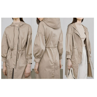 The new puff sleeve is a trendy women's windproof hooded trench coat with a drawstring waist for spring