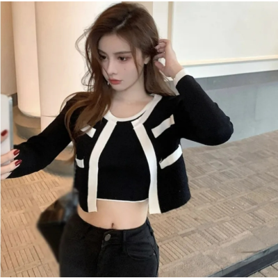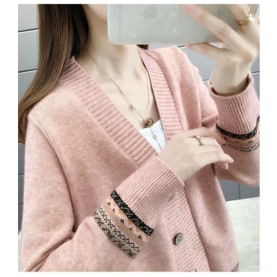 Ladies Autumn Knitted Sweater Coat Korean Thin Knitted Cardigan Sweater Casual Short Long-sleeved Coats