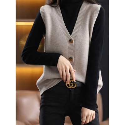 Spring New Knitted Cardigan Sleeveless Vest Loose Outdoor Waistcoat Women