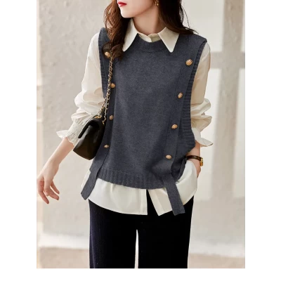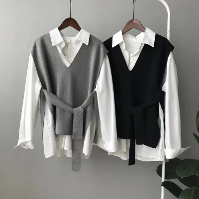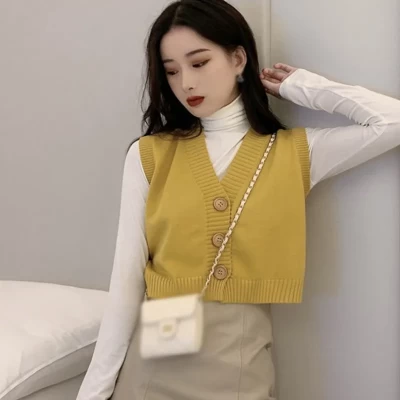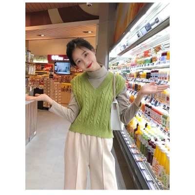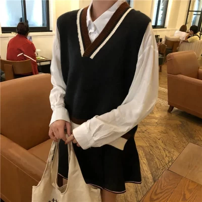 Sweater Vest Waistcoat Girl 2021 Autumn New College Style Wild Knitting Fashion Loose Casual Bottoming Shirt Top