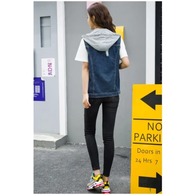 Mid-Length BF Style Nostalgic plus Size Hooded Denim Vest