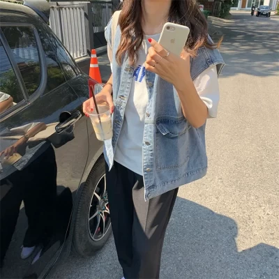 Spring and Autumn Korean Style All-Matching Slim Fit Short Denim Vest