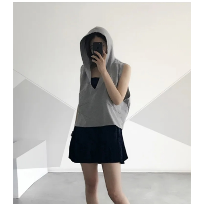 Casual Hooded Pure Cotton Sports Pocket Sweatshirt Vest