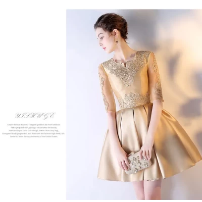 Fashionable Golden Annual Party Short Bridal Evening Gown