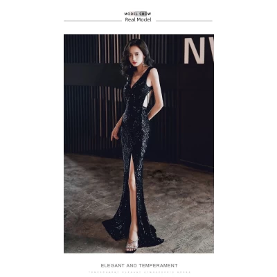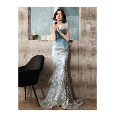 Glary Star High-end Banquet Sequin Evening Dresses Female Temperament Celebrity Fairy Host Toast Senior Sense