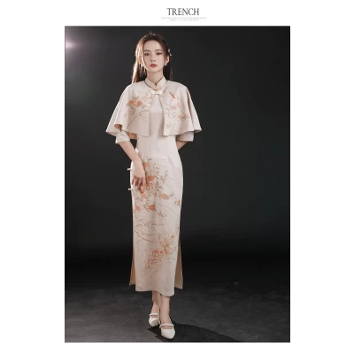 Two-Piece Set Autumn and Winter Long-Sleeved Retro the Republic of China Style Cloak Cheongsam