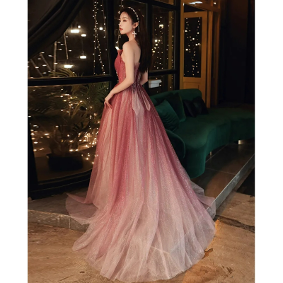 Gradient Evening Dress Women's New Banquet Temperament Long Fairy Tube Top Company Annual Meeting Dress