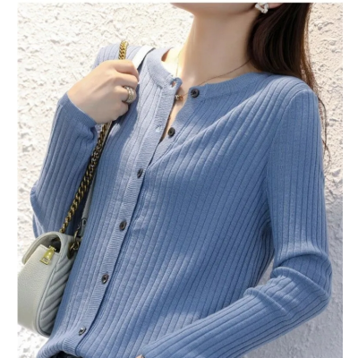Women's Cashmere Sweater Outdoor Knitted Cardigan round Neck Coat New Loose Fashion Short Bottoming Shirt