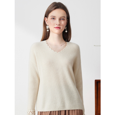 New cashmere sweater lady V-neck crochet knitted sweater in early spring