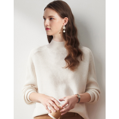Autumn/Winter New Cardigan Women's Warm Half-Turtleneck Solid Color Knitted Sweater