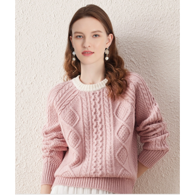 Autumn/winter new wool women's simple cable thick knit sweater