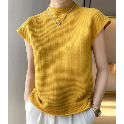Short Sleeve Top Turtleneck Base 2023 New Loose Pullover Solid Color Women's Half Cashmere Knitted Half Sleeve Wool T-shirt