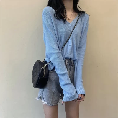 Knit cardigan Thin Women Spring and Autumn 2023 New Long sleeve Sunscreen Loose French style Gentle Ice Silk V-neck Top Women