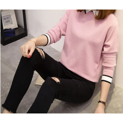 New Arrival Korean Style False Two-Piece Tops Women's Sweater Long Sleeves Loose Fleece-lined Bottoming Knitwear Autumn