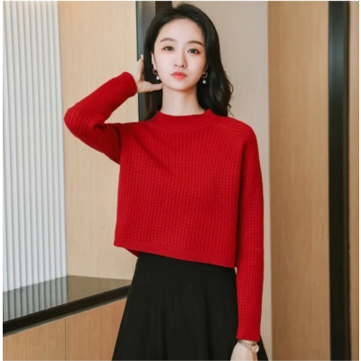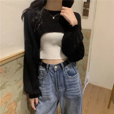 High Waist Short Sweater Women Long Sleeve Loose and Lazy Style Knitted Top
