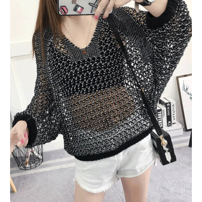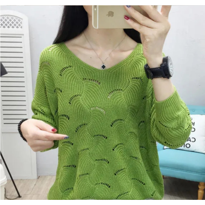 New Hollow Knitwear Women's Pullover Loose Korean Undercoat Top V-neck Sweater Thin