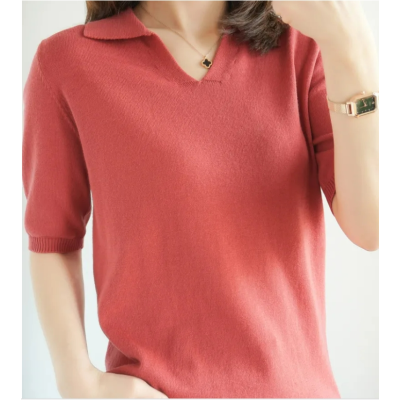 Summer Knitted Ice Silk Short Sleeve T-shirt Women's Polo
