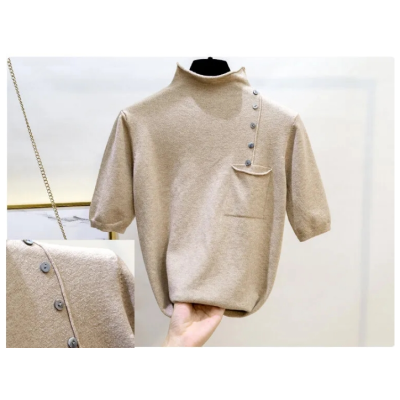 Autumn and Winter Half-high Collar Sweater Knitted Half-Sleeve Women's Loose Thin Bottoming Shirt