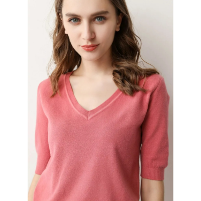 Half Sleeve Sweater Women's V-neck Short Pullover Short Sleeve Thin Base Shirt Loose Mid-sleeve Sweater