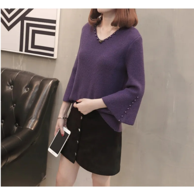 Big Sale! Big Sale Price! V-neck Sweater Women's Pullover Three-Quarter Sleeve 2023 Spring and Autumn Bottoming Shirt Sweater