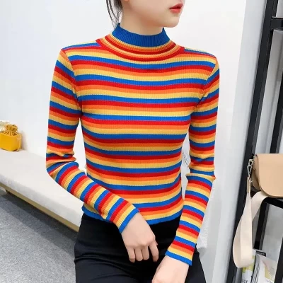 Tight knit shirt for women in autumn and winter with elegant style ins long sleeve pink top